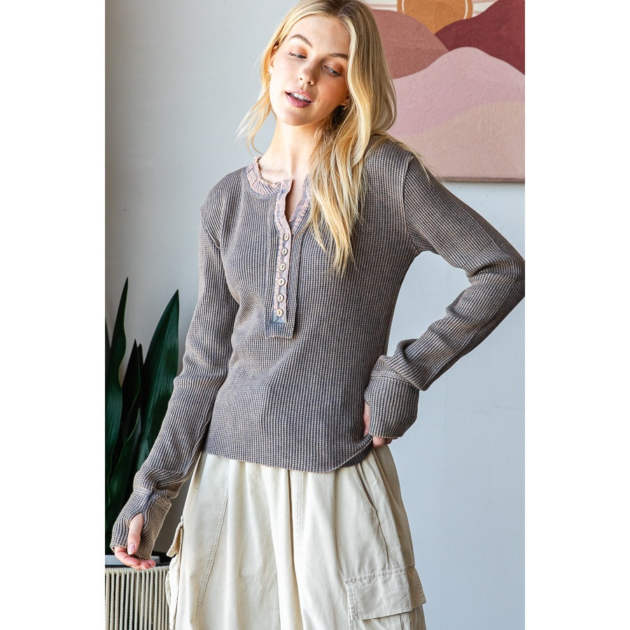 OLI + HALI Mineral Washed Henley Neck Thermal Top