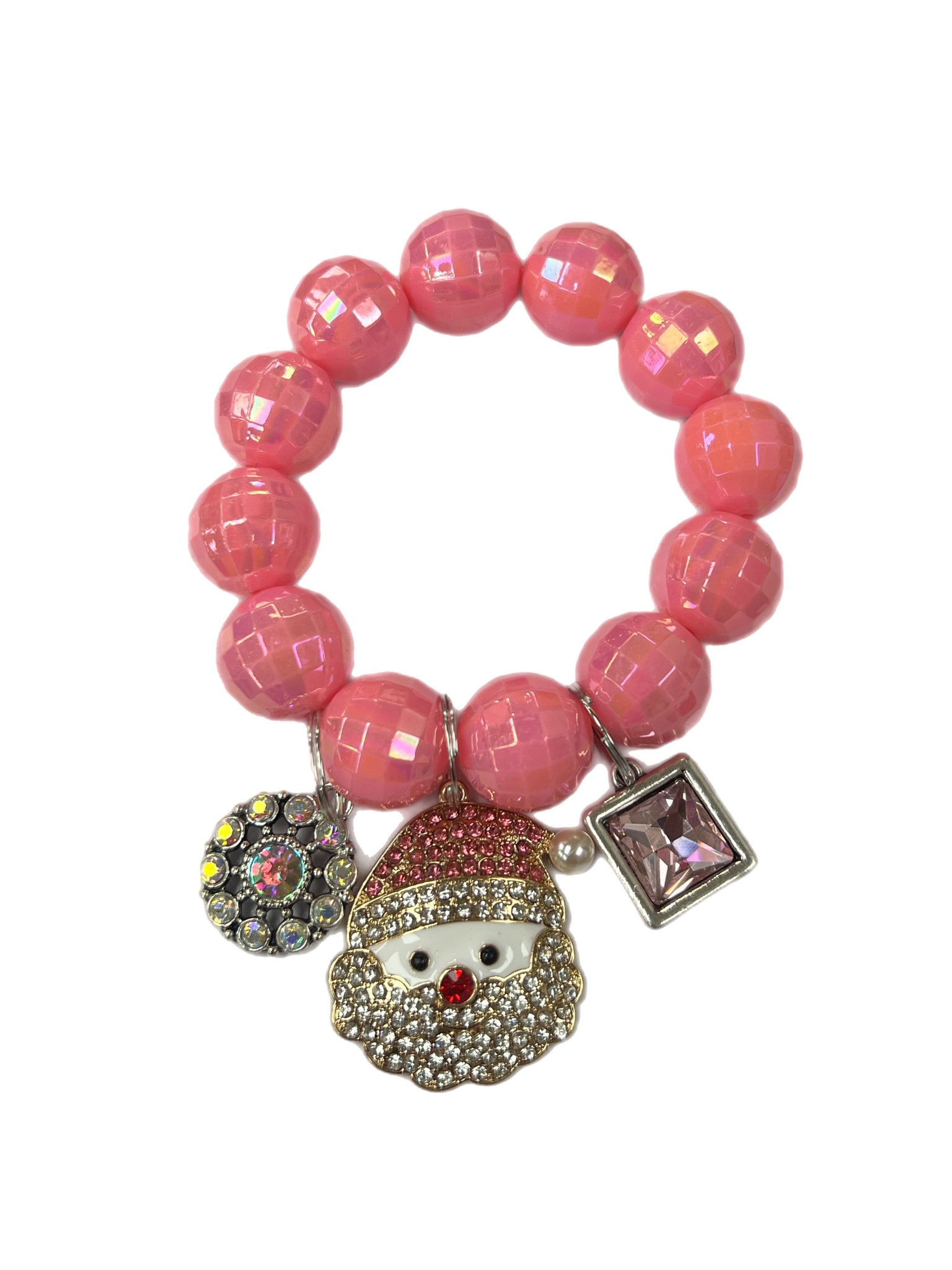 ATG Pink Crystal Triple Charm Santa Stretch Bracelet