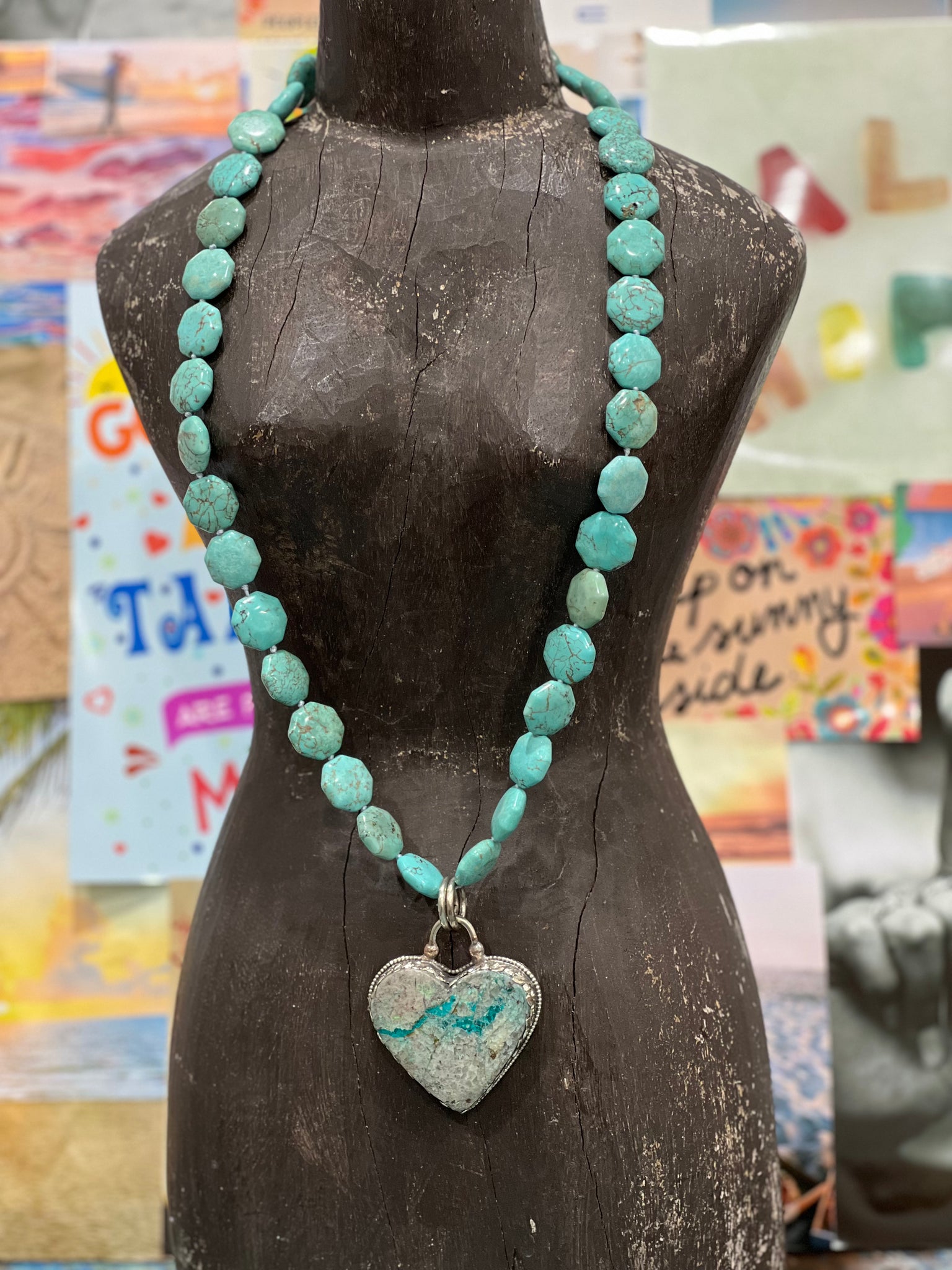 MALIBU HIPPIE Howlite Tibetan Silver Chrysocolla Heart OOAK Necklace