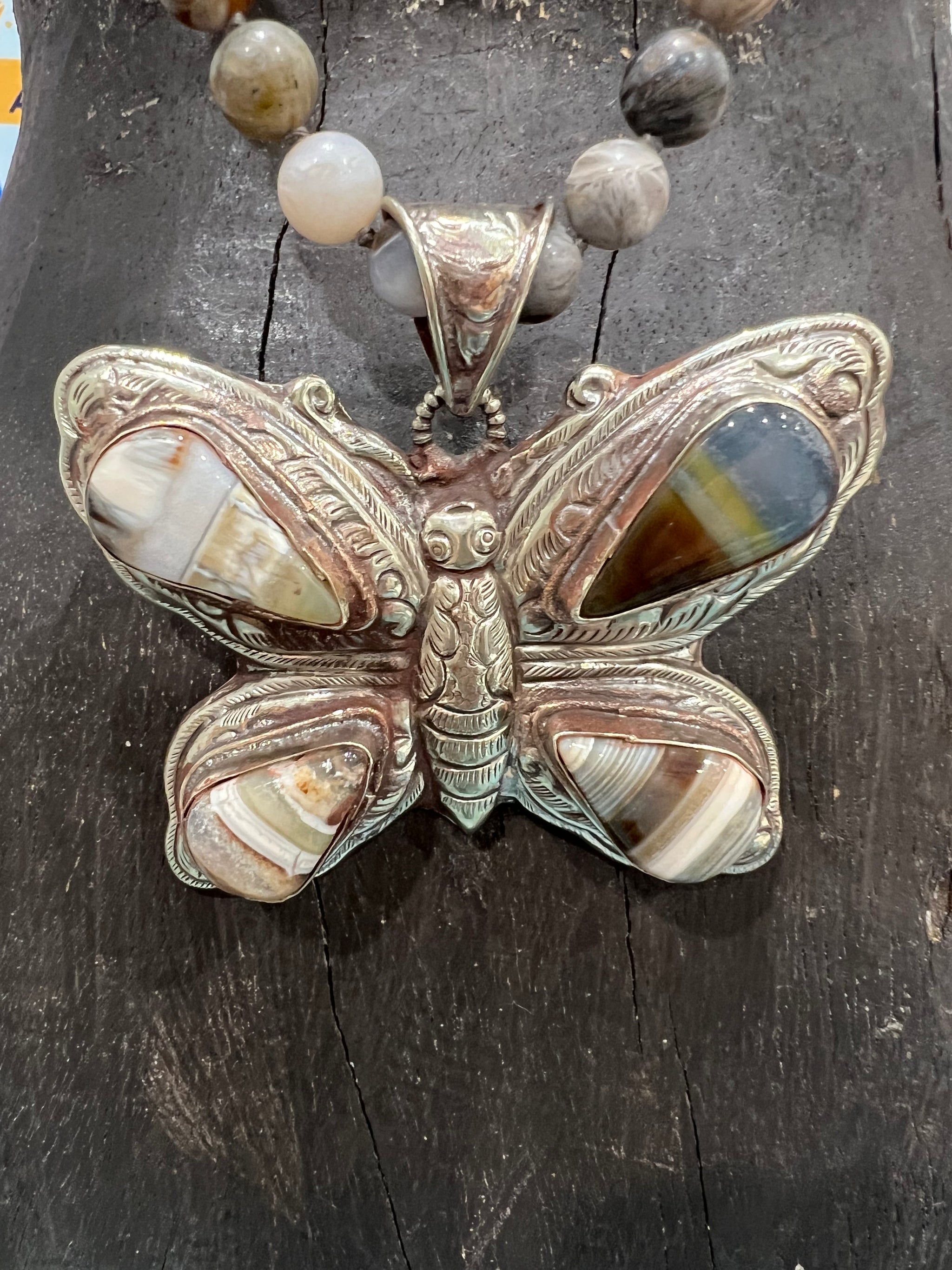 MALIBU HIPPIE Jasper Tibetan Silver Botswana Agate Butterfly OOAK Necklace