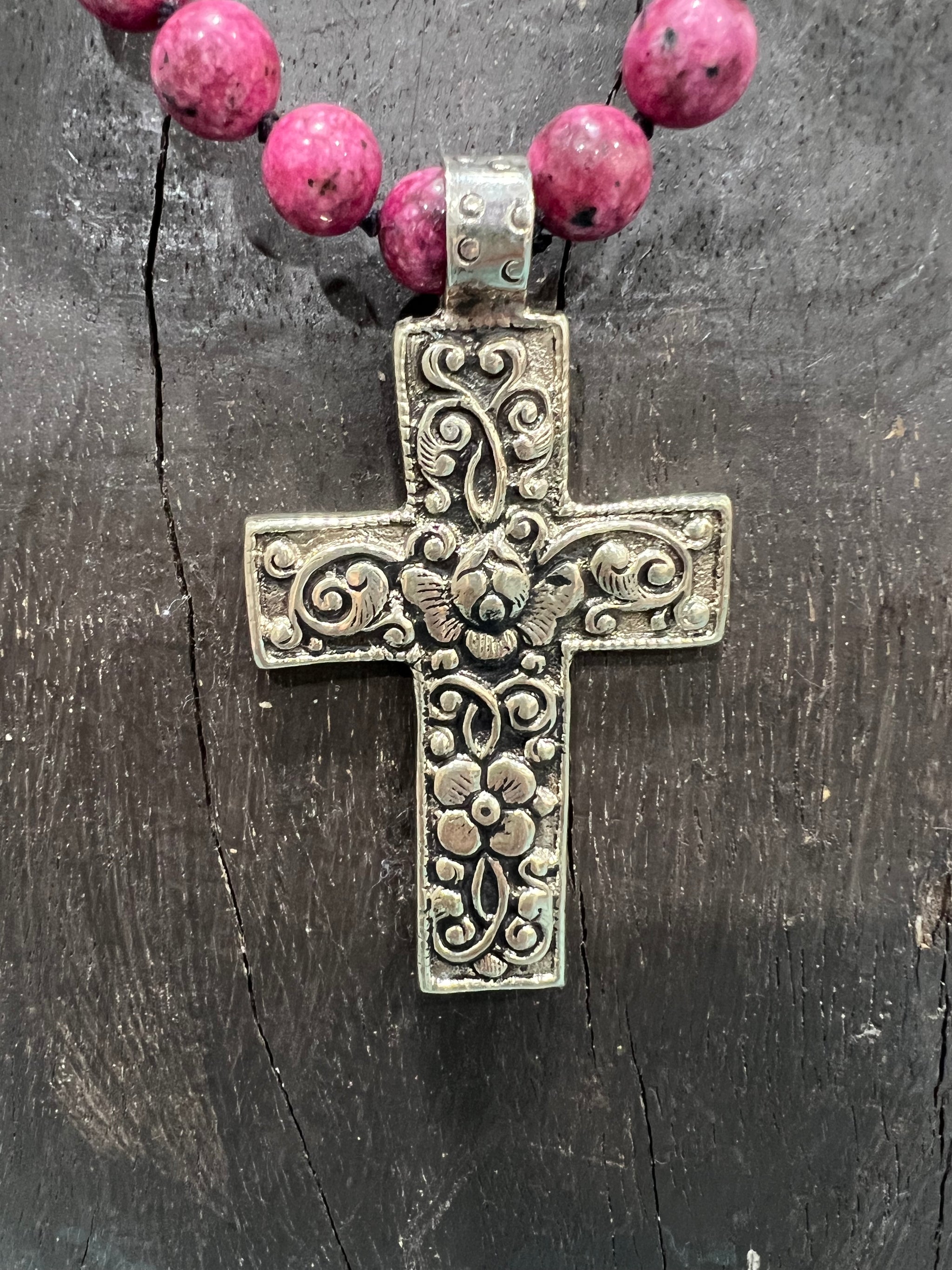 MALIBU HIPPIE Sea Sediment Jasper Tibetan Silver Cross OOAK Necklace