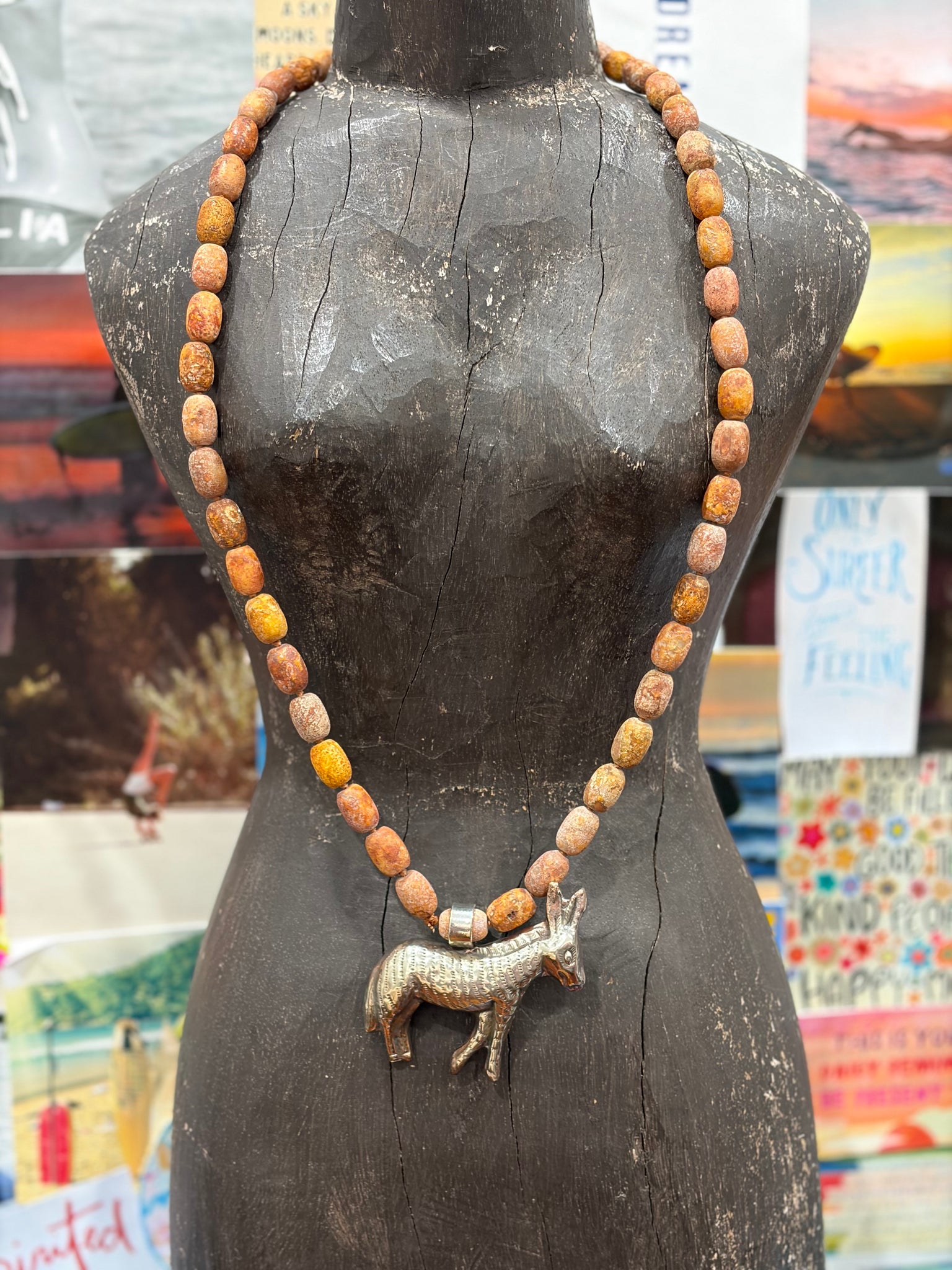 MALIBU HIPPIE Natural Jasper Tibetan Silver Donkey OOAK Necklace