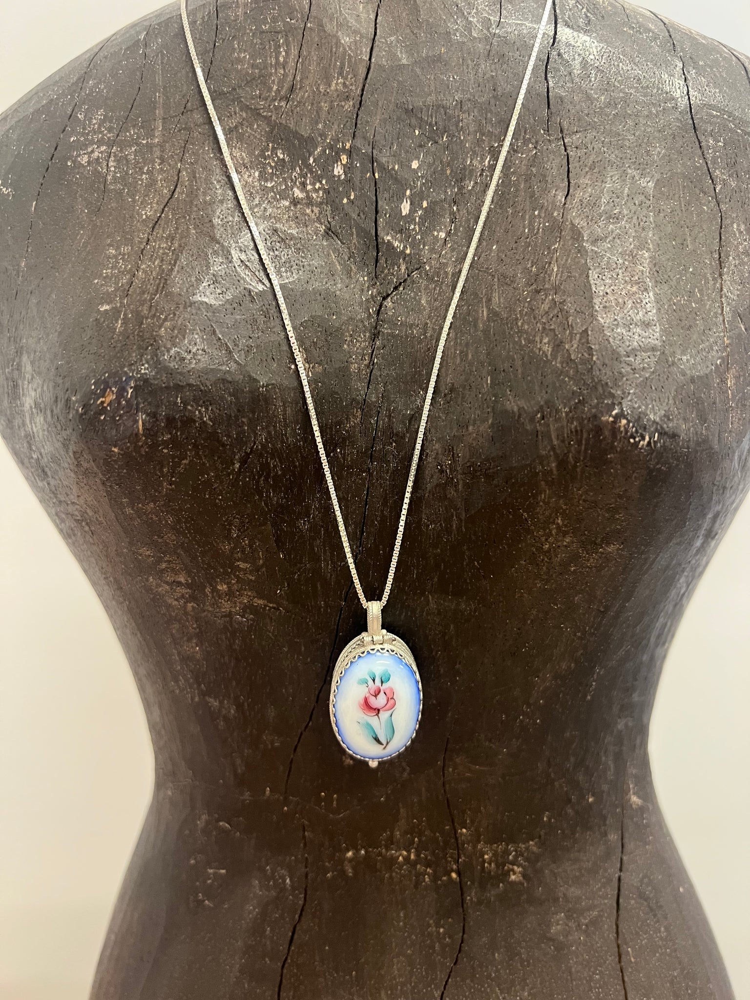 MALIBU HIPPIE Sterling Silver Angel/Rose Double Sided Box Necklace