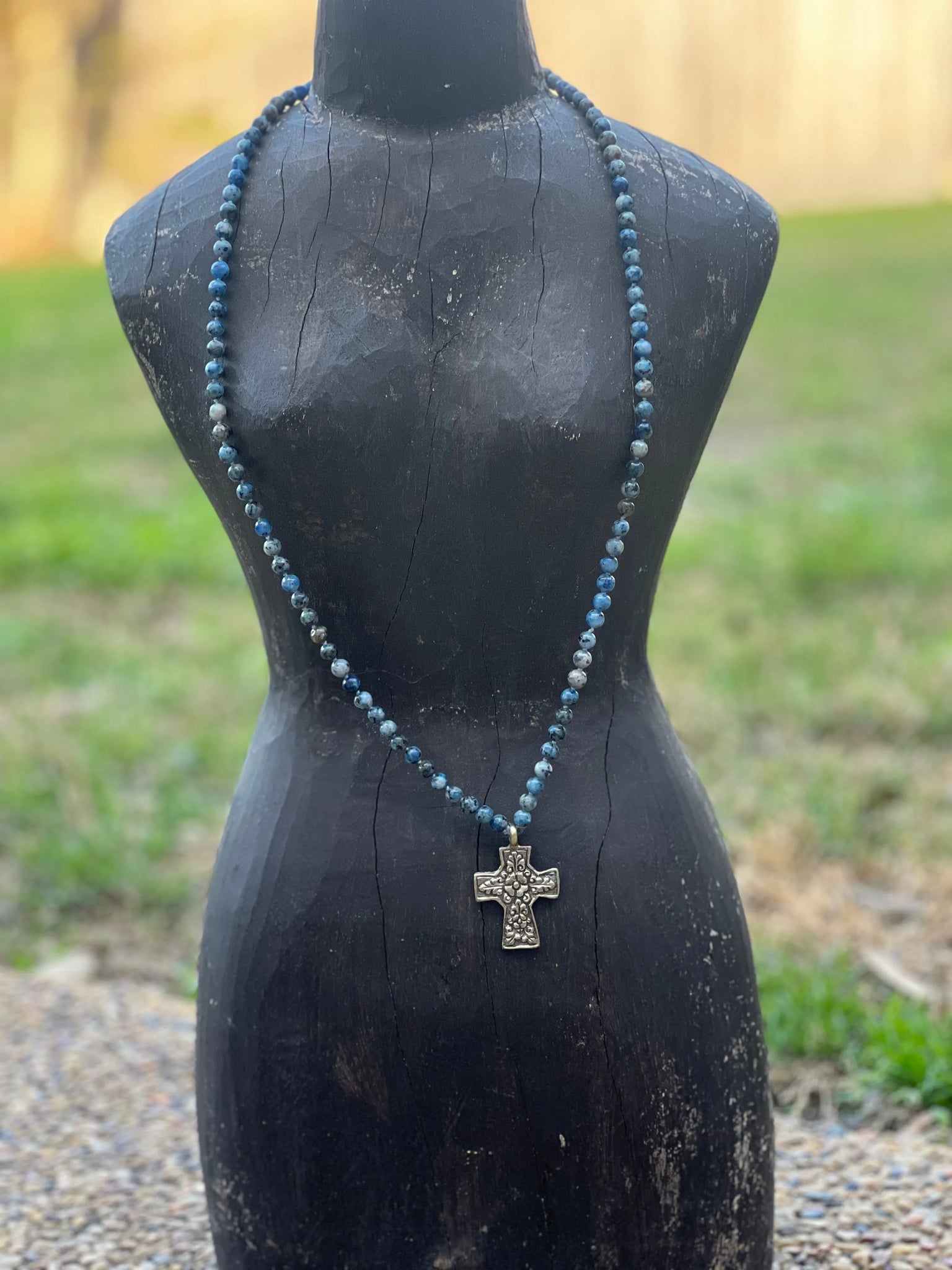 One of a Kind Sea Sediment Jasper Tibetan Silver Cross Necklace