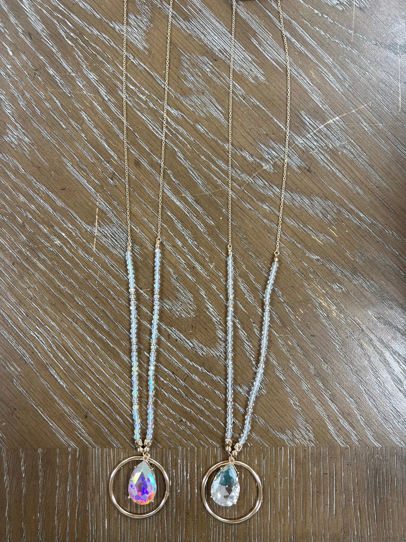 PINK PANACHE Long Beaded/Chain Teardrop Stone Necklace