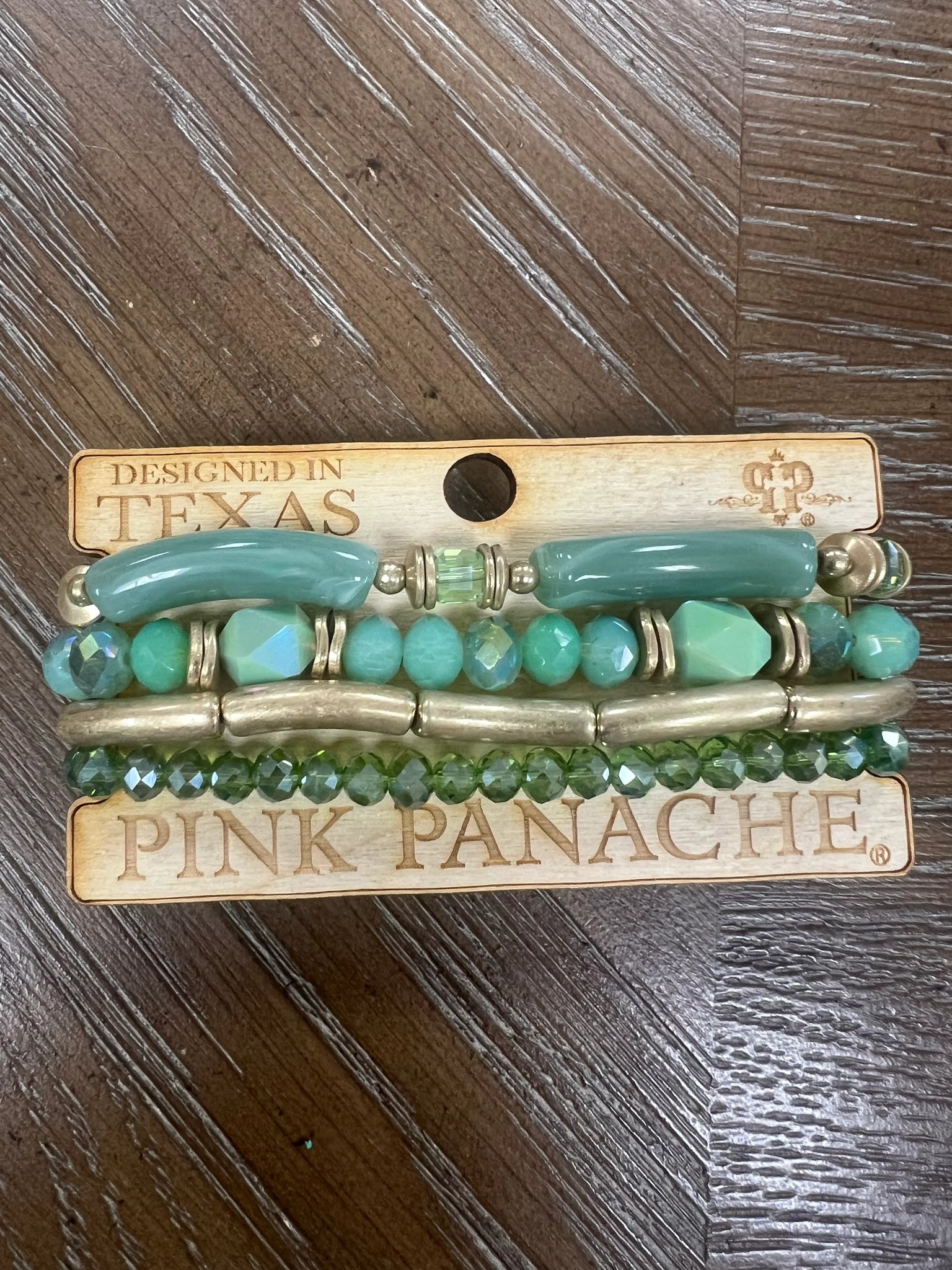 PINK PANACHE 4-Layer Green/Gold Bracelet Stack