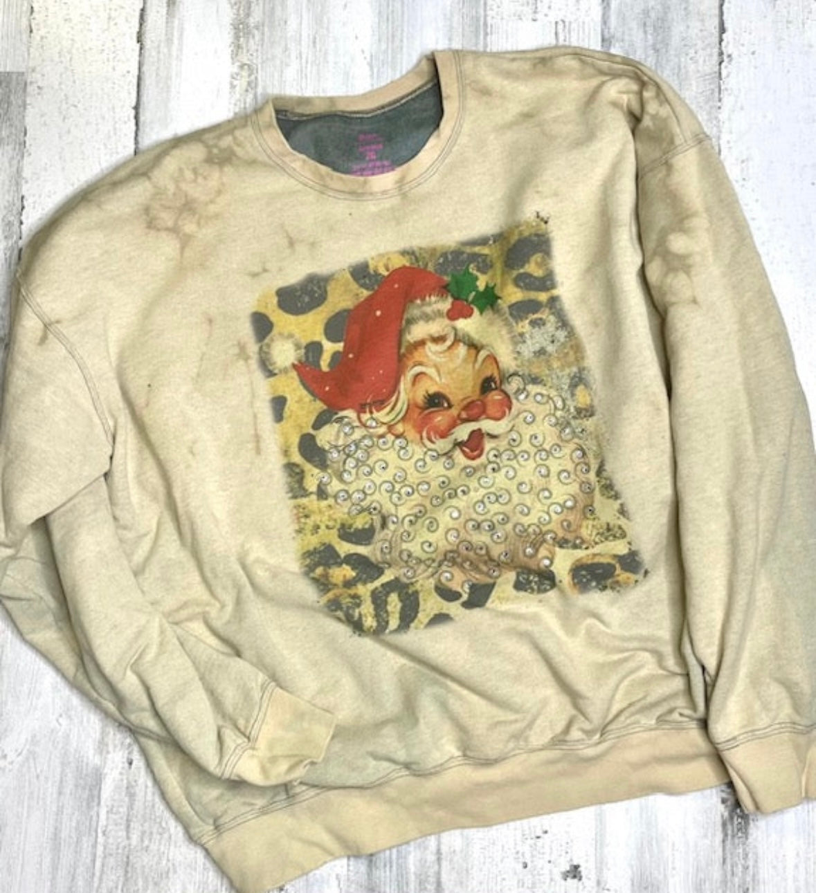 RAISIN ARROWS Bling Vintage Santa Bleached Cream Sweatshirt