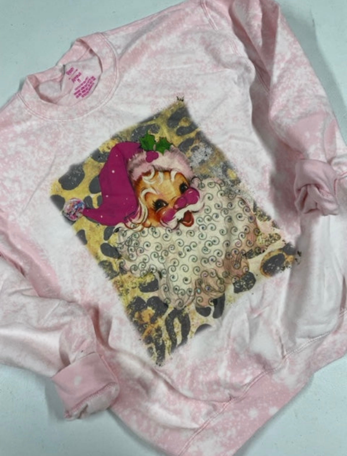 RAISIN ARROWS Bling Vintage Santa Bleached Pink Sweatshirt