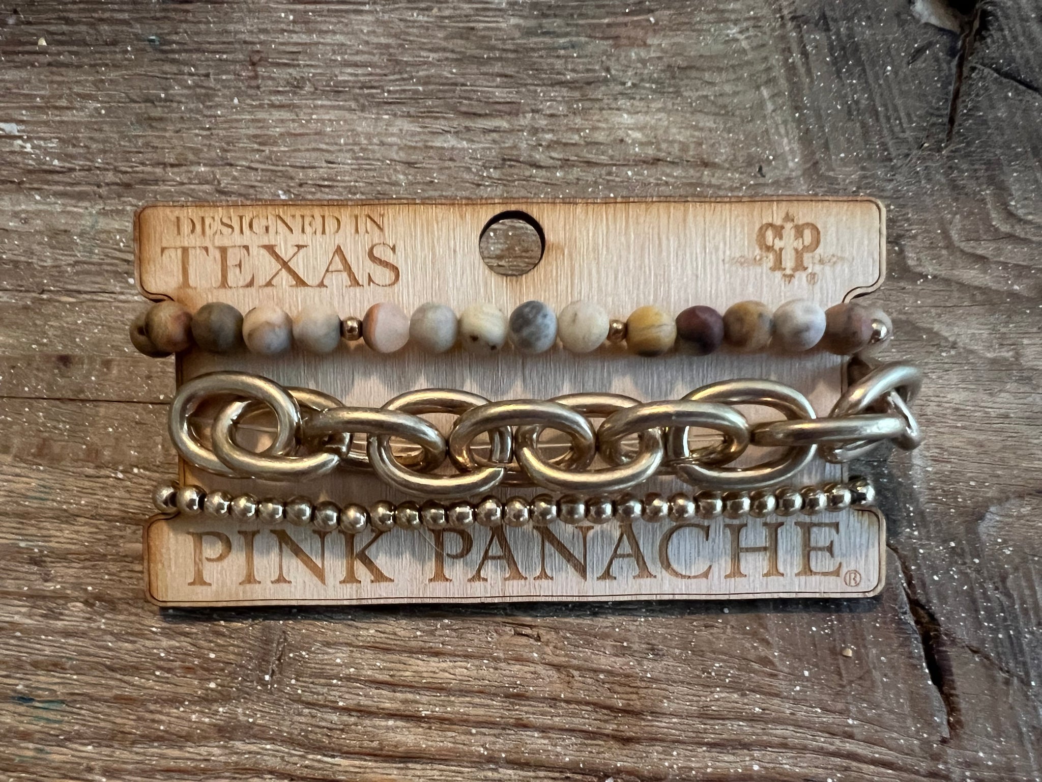 #77 One of a Kind Neutral Stretch Gold Chain Stack