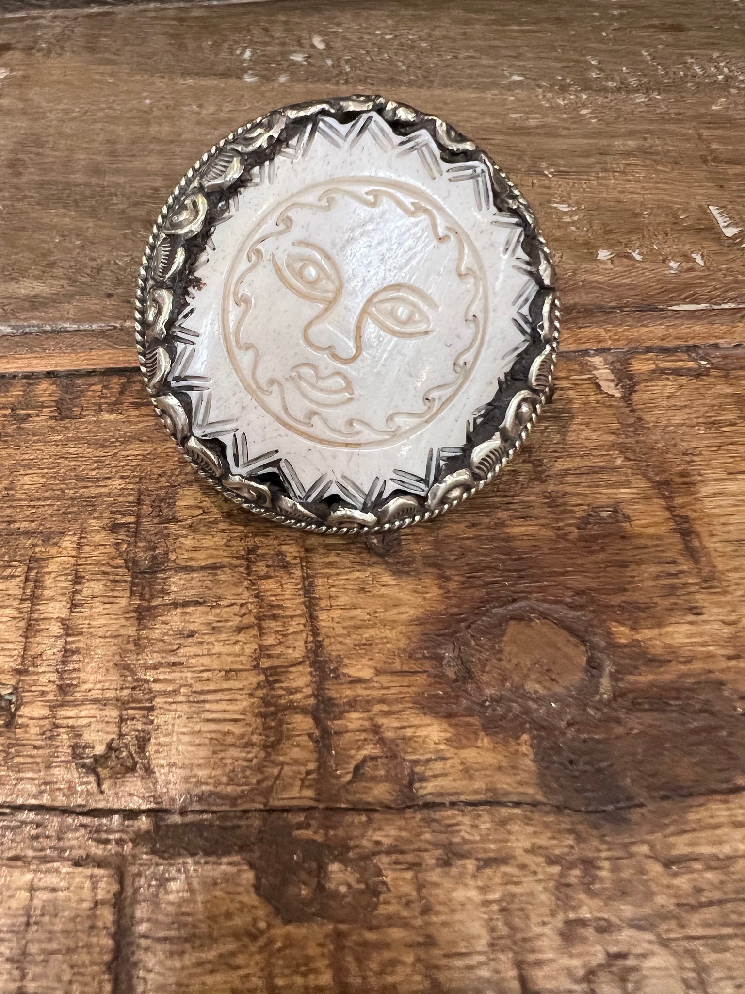 Adjustable Carved Tusk Sun Tibetan Silver Ring