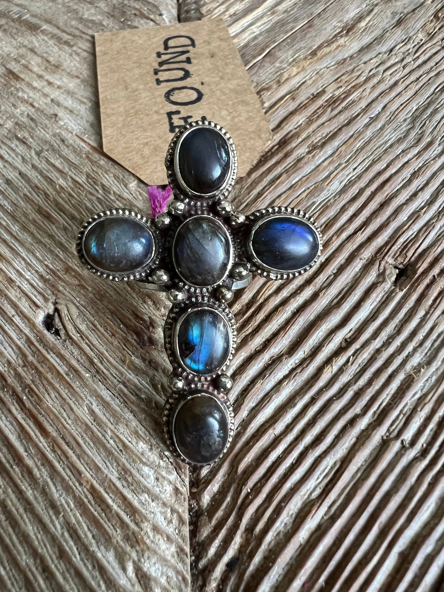 Adjustable Tibetan Silver Labradorite Cross Ring