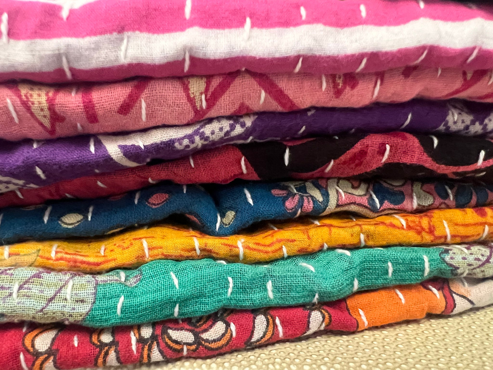Beautiful One of a Kind Kantha Kitchen Towel made of recycled Sari fabrics from India.