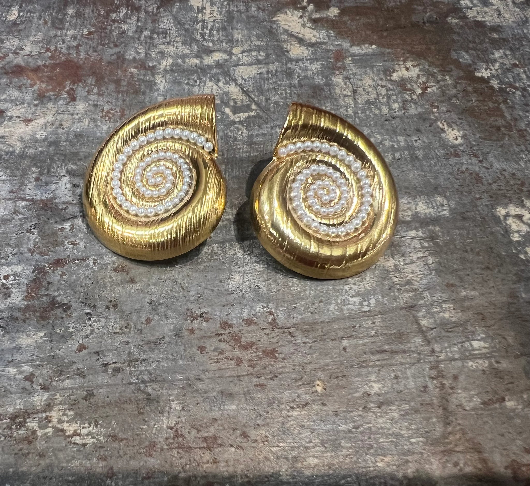 GALORE Plated Gold Pearl Seashell Earrings
