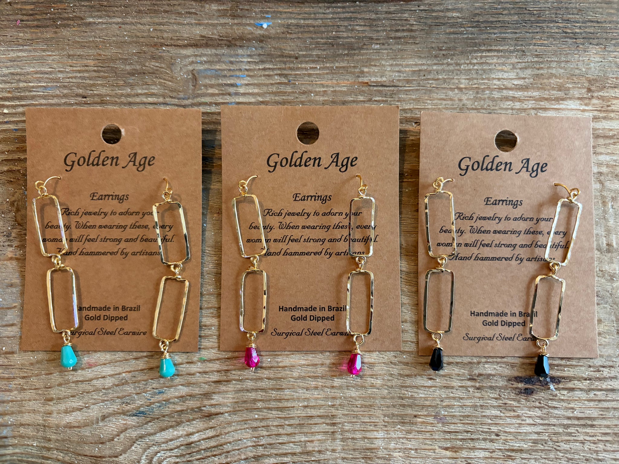 GOLDEN AGE Gold Double Rectangle w/ Bead Earrings