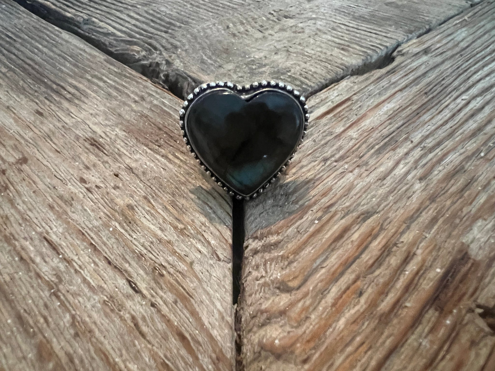 One of a Kind Labradorite Heart Turkish Silver Ring (Size 8.5)