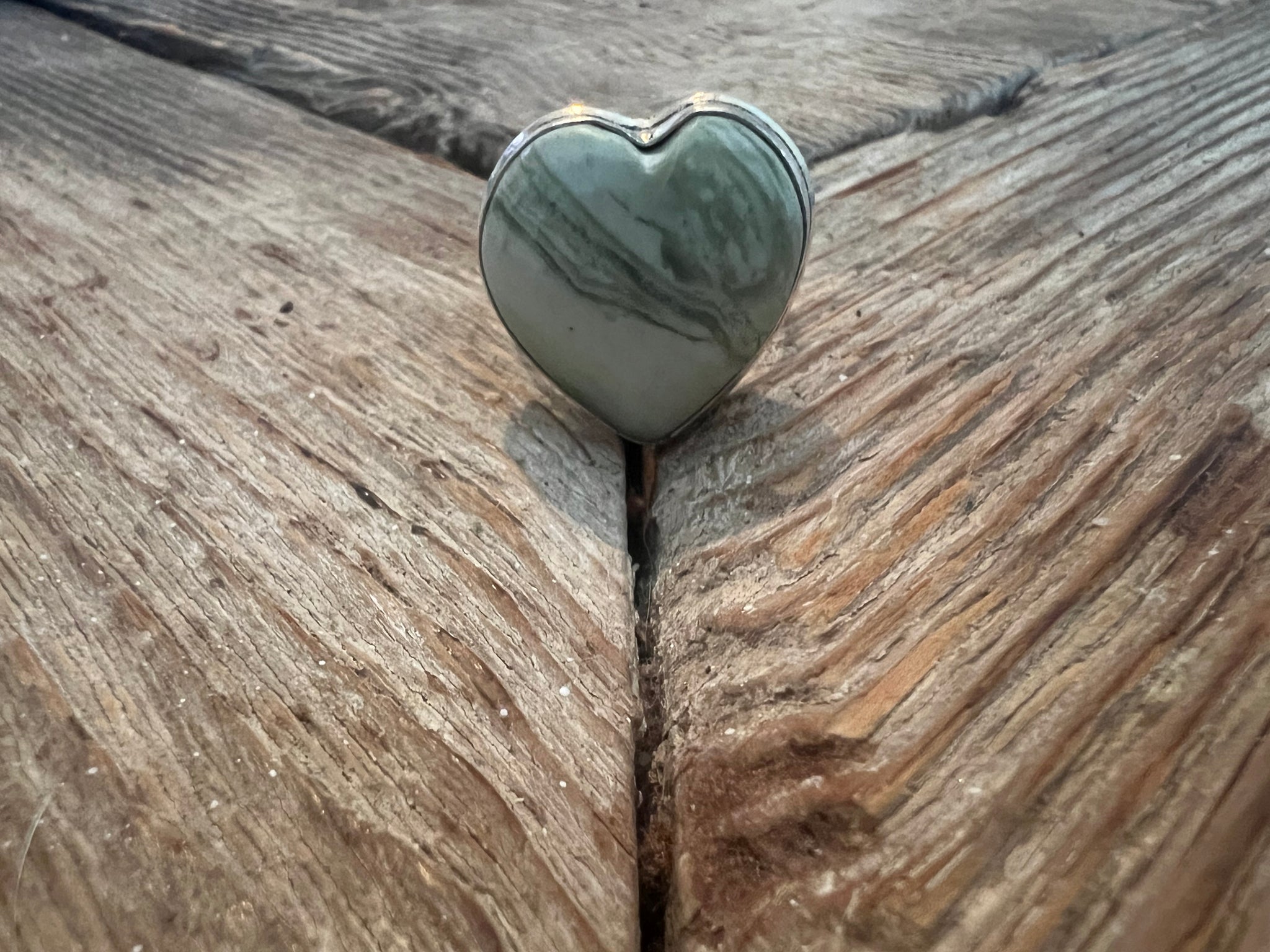 One of a Kind Larsonite Heart Turkish Silver Ring (Size 9.5)