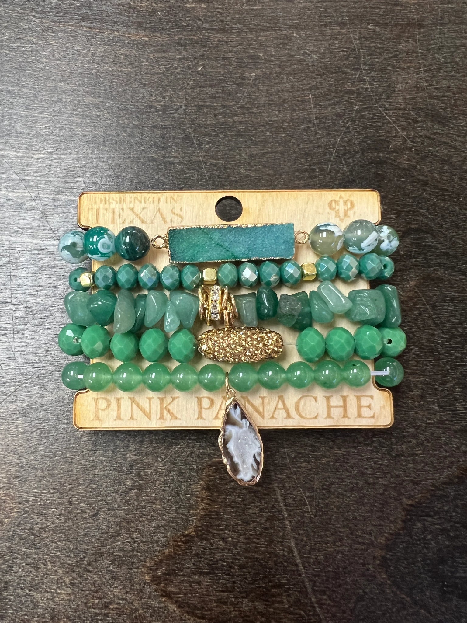 PINK PANACHE Green Druzy Beaded Bracelet Stack
