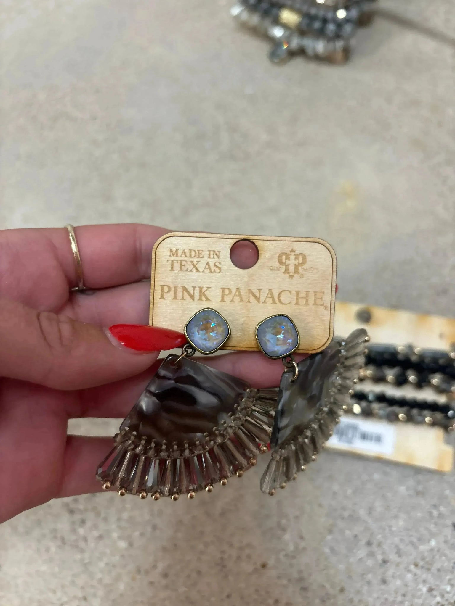 PINK PANACHE Purple Fan Earrings w/ Gem