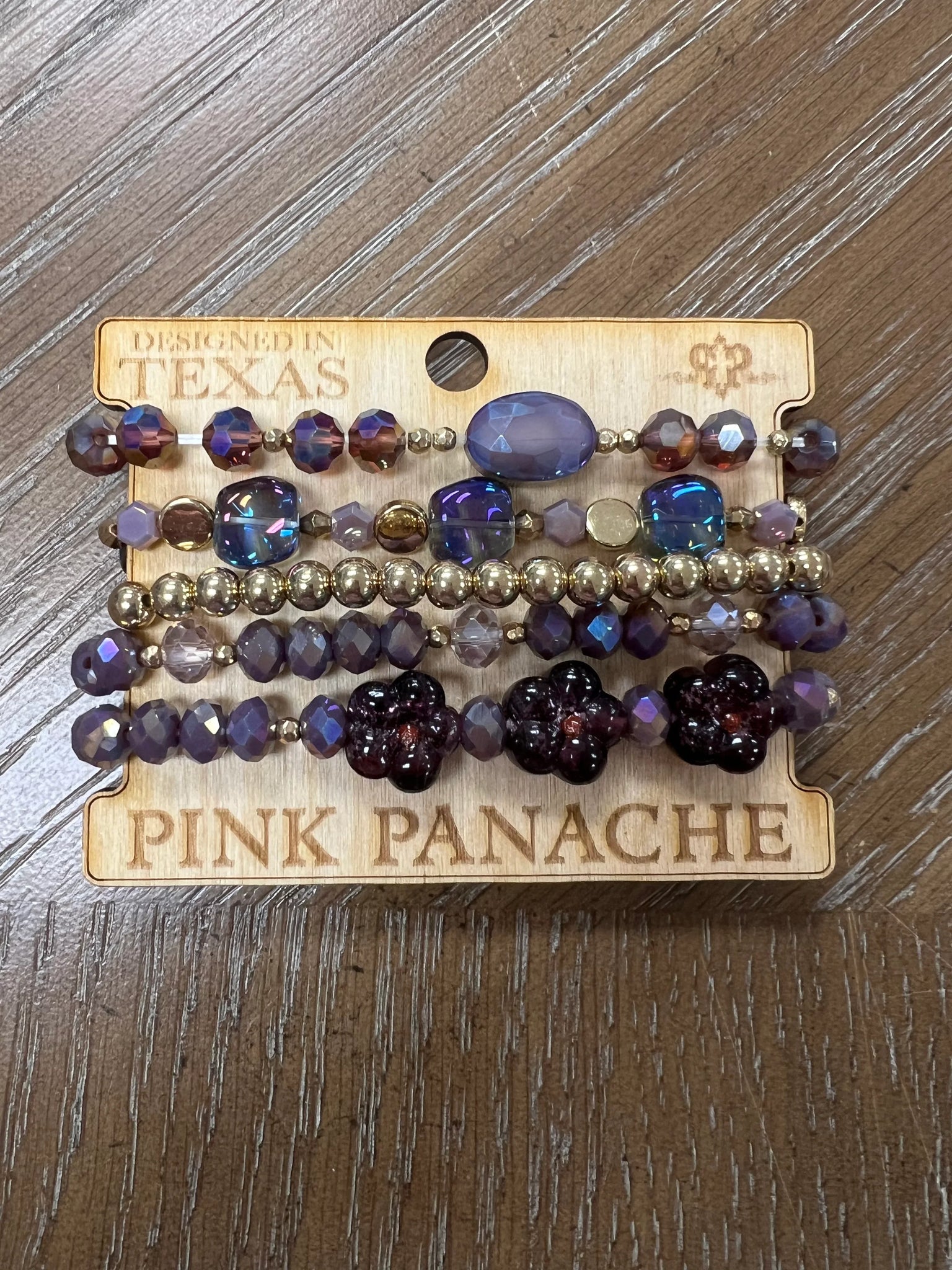 PINK PANACHE Purple/Gold Flower Bracelet Stack