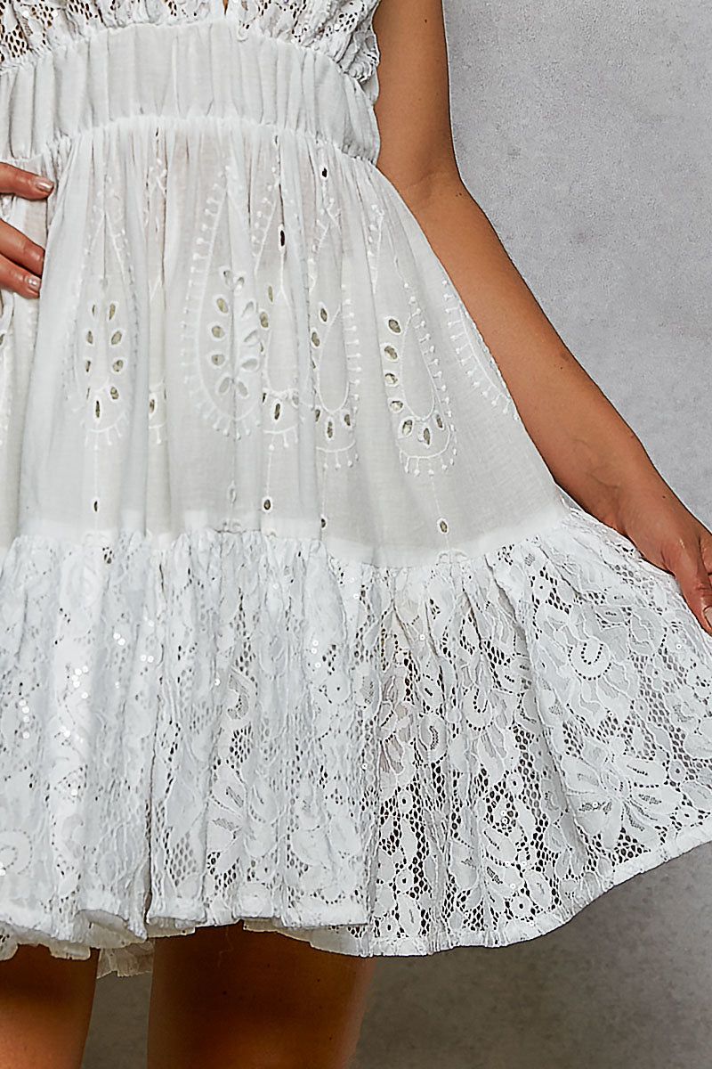 POL Halter Lace Patch Ruffle Mini Dress with Adjustable Tie on Back **SALE**