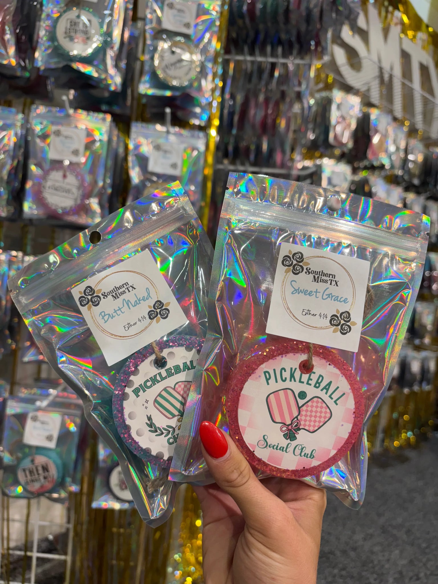 Hang from your rear view mirror to get your car smelling fabulous! You can also hang in closets or in bathrooms. The scent will last for 1-2 months!